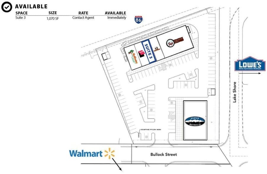 - Adjacent au centre commercial régional et aux principaux ancres de l'échangeur principal I-86.