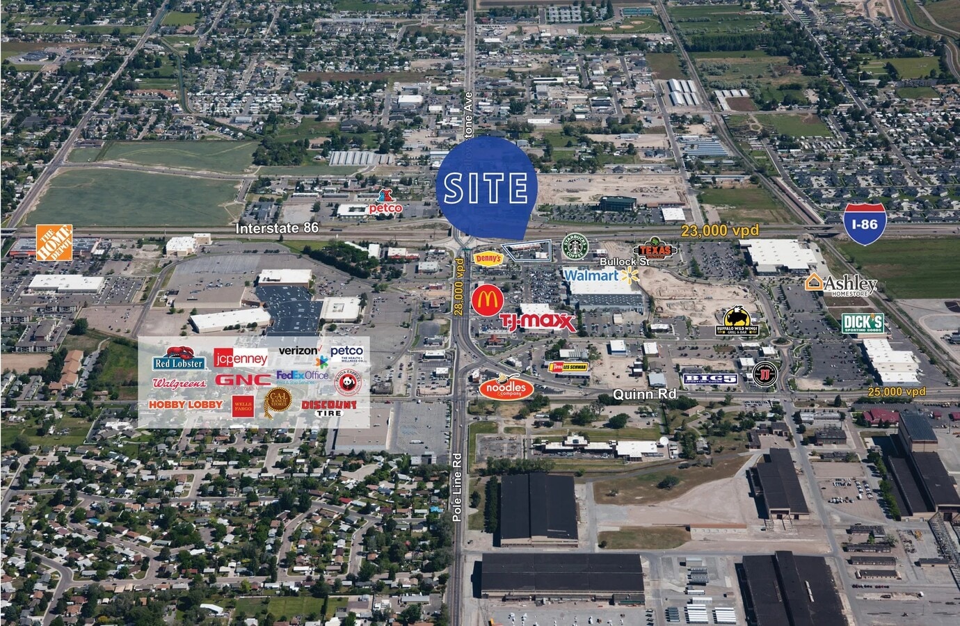 Shadow-Anchored by a Walmart Supercenter. Adjacent to regional mall and major anchors at the main I-86 Interchange. Highest traffic counts in the market. Over 137,000 residents in the trade area.