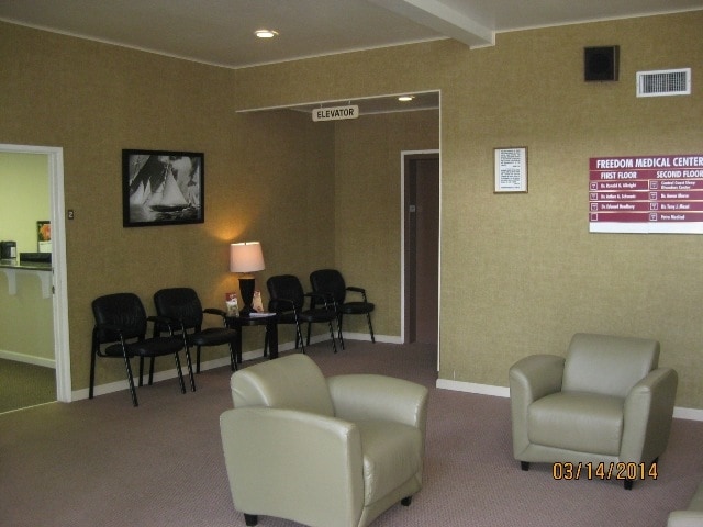 Nicely appointed medical office space featuring multiple exam rooms and a welcoming reception area. The building offers a spacious shared lobby, creating a professional and inviting environment for patients and staff alike.
