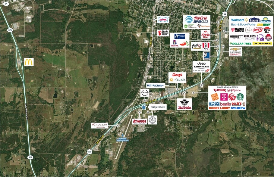 - Les voisins comprennent : l'aéroport régional McAlester, le hall d'entrée Hobby, Ross Dress for Less et Five Below