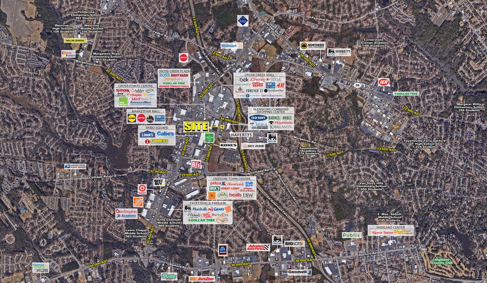 - Centrally located between Fayetteville’s major retail corridors and next to the Cross Creek Mall