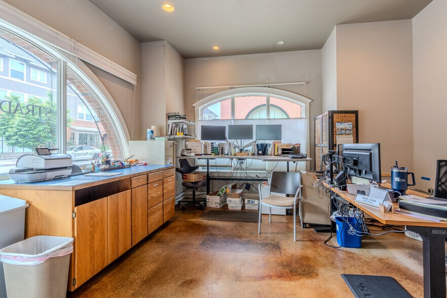 Rent: $18.00 SF NNN. Like new offices; Great location--- with multiple offices and work spaces on 2 floors. Reception/entry on main floor. Restrooms with showers! Space includes a large attache storage area (2 car garage style).