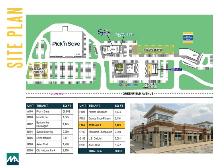 - Traffic Counts: 21,700 VPD on W Greenfield Ave