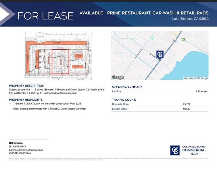 La propriété en question couvre 1,12 acre. Située entre un 7-Eleven et un Quick Quack Car Wash, elle est entièrement approuvée pour un restaurant de restauration rapide avec service au volant de 4 456 pi².