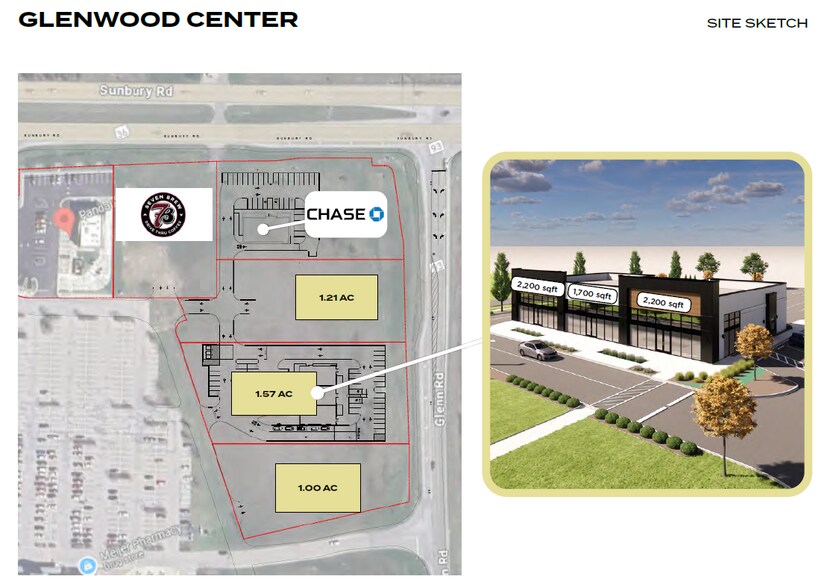 The property is located at the intersection of Sunbury Road and Glenn Road in Delaware, Ohio. It is part of a retail corridor anchored by Meijer and Kohl’s and includes multiple parcels ranging from approximately 1.00 to 1.57 acres. The site is near major roadways and benefits from a reported traffic count of 28,008 vehicles per day on Sunbury Road. Surrounding uses include national retailers, restaurants, and service providers. The area is within proximity to Interstate 71 and is part of a growing suburban market north of Columbus.