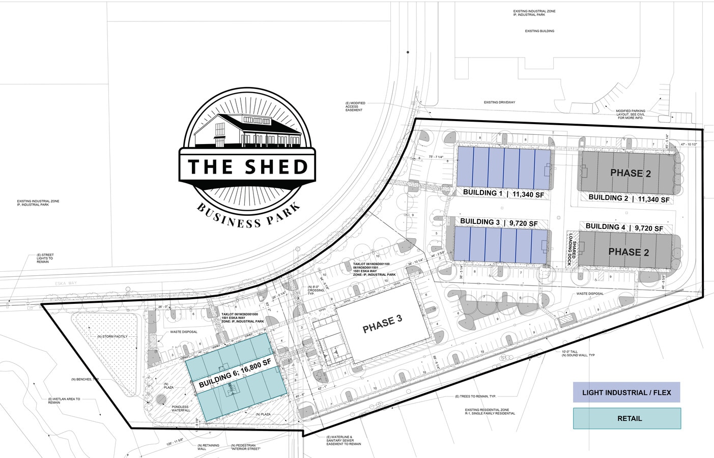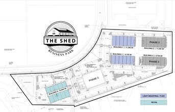 The light-industrial buildings at The Shed Business Park are thoughtfully designed to support a wide range of modern industrial, contractor, and flex users, offering efficient layouts, durable construction, and strong visual appeal. Suites feature clear-span interiors with high clear heights, concrete slab floors, and grade-level overhead doors (up to 16’ x 14’ in select buildings), providing excellent functionality for warehousing, fabrication, service, and distribution uses. Each suite includes dedicated pedestrian access, modern aluminum storefront glazing for natural light, and flexible demising that allows tenants to scale. Exterior finishes combine prefinished metal roofing, composite lap siding, and brick veneer wainscot for a clean, contemporary industrial aesthetic, while ample parking, interior private drive aisles, and pedestrian connectivity enhance overall campus usability.