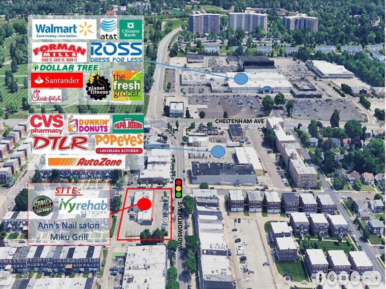 Le 1555, avenue E. Wadsworth, à Philadelphie, en Pennsylvanie, est un centre de quartier désirable au cœur de l'activité commerciale pour les résidents du mont. Section aérienne du canton de Philadelphie et de Cheltenham. Les détaillants de la région comprennent Walmart, Target, Home Depot, Ross Dress for Less, CVS et Philly Pretzel Factory pour ne nommer que quelques-unes des entreprises qui desservent les communautés environnantes. Occasion de plafonnement final de 1 200 SF de MetroPCS. 26,50$ par SF (tarif de base) +7,93 $ par SF (NNN) ou 3 443,00 $/mois (« tout compris ») + services publics.