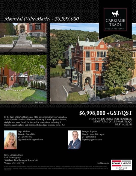 1565 Av Du Docteur-Penfield - Manoir Carsley Immeuble de 10 000 pi² • Spécialité • À vendre 6 988 000 $ CAD • Taux de capitalisation 5% • Montréal, QC H3G 1C6