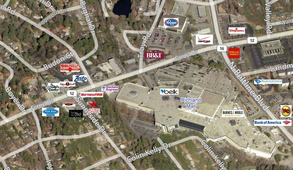 Retail space is available for lease at 1568-1572 Sunnyside Drive in Columbia, SC. The property offers 1,850 SF of space, which can be subdivided into smaller units of approximately 750 SF and 1,100 SF to accommodate various tenant needs. Zoned GC (General Commercial), the site is well-suited for a range of retail uses. The location benefits from strong traffic counts, with approximately 27,600 vehicles per day on Forest Drive and 14,300 vehicles per day on North Beltline Boulevard. The property is positioned near the Richland Mall redevelopment site, which is planned to include a future grocery store, apartments, retail, and a local park, enhancing the area’s appeal and foot traffic. This site provides convenient access to major roadways and is surrounded by established neighborhoods and retail corridors, making it an attractive option for businesses seeking visibility and accessibility in Columbia’s growing market.