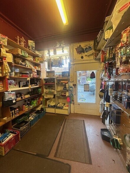 the front with back shop storage, a tea prep are a and toilet.