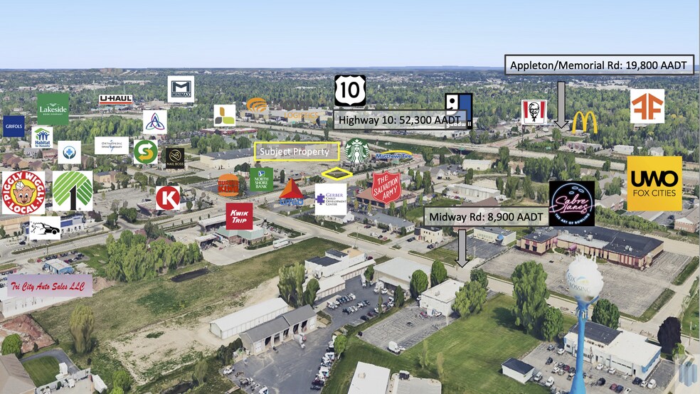 Cette parcelle à haute visibilité menant au centre commercial Menasha Marketplace a 13 599 pieds carrés de surface locable au sol, une excellente visibilité depuis l'autoroute 441 et un accès pratique à l'Interstate 47, une généreuse REA pour le stationnement, de multiples points d'entrée et de sortie avec accès gauche/gauche et des voies de virage dédiées. Adjacent à Starbucks, Burger King, Subway, etc., près de l'Université de WI Oshkosh sur le campus de Fox Cities. Nombre élevé de véhicules à l'intersection Midway Road/Appleton Road/HWY 441 - plus de 80 000 véhicules par jour ! Disponible pour le bail foncier, veuillez contacter pour plus de détails.