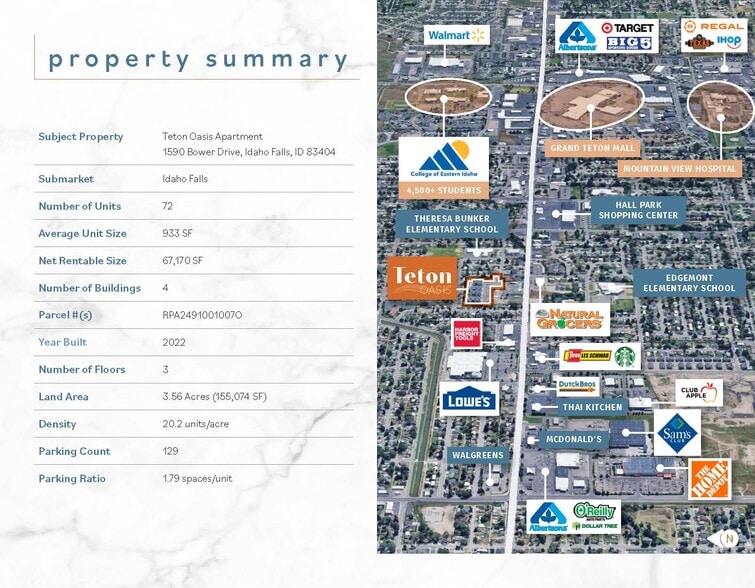 CBRE is pleased to offer the exclusive listing of Teton Oasis, a newly constructed 72-unit multifamily community in Idaho Falls, Idaho. Built in 2022, this modern apartment property delivers contemporary design, strong market fundamentals, and a compelling value-add opportunity in one of the Northwest’s fastest-growing and best-performing small cities.