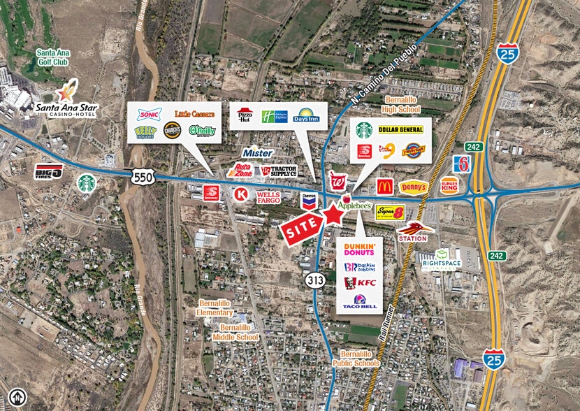 -Centrally located near the busy intersection of NM Hwy. -550 & Camino del Pueblo -Rapidly-growing trade area -Modern and well-maintained construction -Medical co-tenancy -Available July 1, 2026