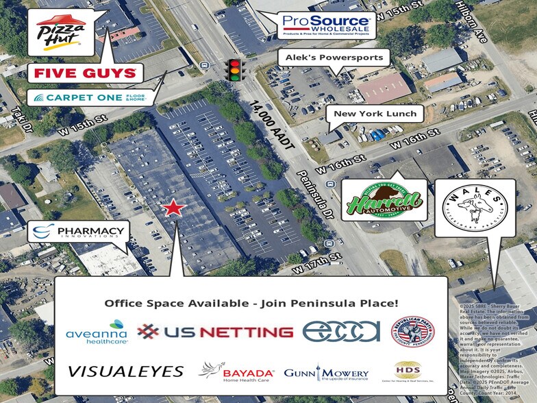 Espace de bureaux de 3 050 ± SF à louer à Peninsula Place. L'aménagement comprend une réception, 3 bureaux privés, 2 espaces de travail, une salle de conférence, une salle de repos, une salle de TI et 2 toilettes. Éclairage à DEL et peinture fraîche partout. Plan d'étage et visite 3D disponibles. Le propriétaire offre des incitatifs aux locataires, y compris une allocation pour les revêtements de sol. Le long d'un corridor à forte circulation avec sortie et entrée faciles — à l'intersection avec signalisation de la 15e rue W. 15e et de la promenade Peninsula. Parking hors voirie abondant avec plus de 200 places de stationnement. Idéalement situé près des principales artères locales et sur la ligne d'autobus. À seulement 2 km de l'I-79 et à 6,5 milles de l'I-90. Joignez-vous à Aveanna Health Care, Bayada Pediatrics, Center for Hearing & Deaf Services, E.C.C.A. Payroll Services, Parti républicain, UPMC Primary and Specialty Care, UPMC Rehabilitation Institute, Visualeyes et plus encore. Offert au prix de 12,00 $/SF/AN + utilitaires CAM +. Le CAM est estimé à 2,50 $SF/an en fonction de 2023. Le locataire paie environ 3 685 $/mois (loyer + CAM) plus les services publics. Communiquez avec le courtier pour obtenir de plus amples renseignements ou pour planifier une visite guidée.