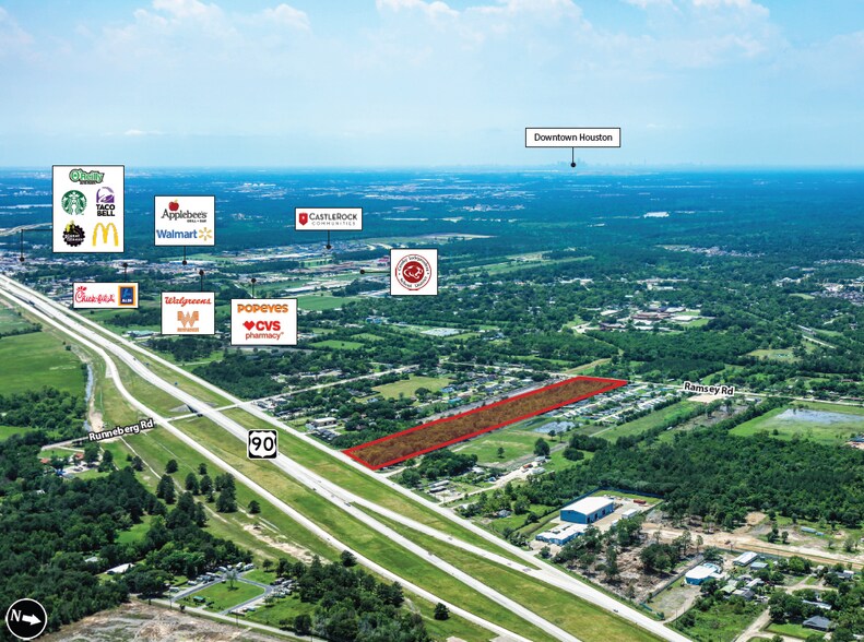 FAÇADE : US Autoroute 90:±380' et chemin Ramsey : ±315' SERVICES PUBLICS : Crosby MUD Pas de zonage