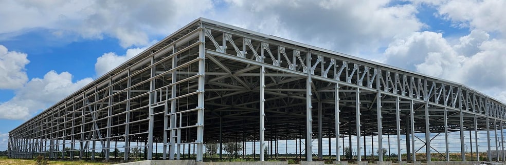 Danimer began to build a large chemical plant in 2022, including the large partial building seen in the pictures. The decision was made to stop construction and to sell the assets. Danimer spent almost $25,000,000 on the partial building: $4,600,000 for excavation and foundation work, $12,800,000 for steel and fabrication, $5,000,000 on steel erection, and $2,100,000 on the roof system.