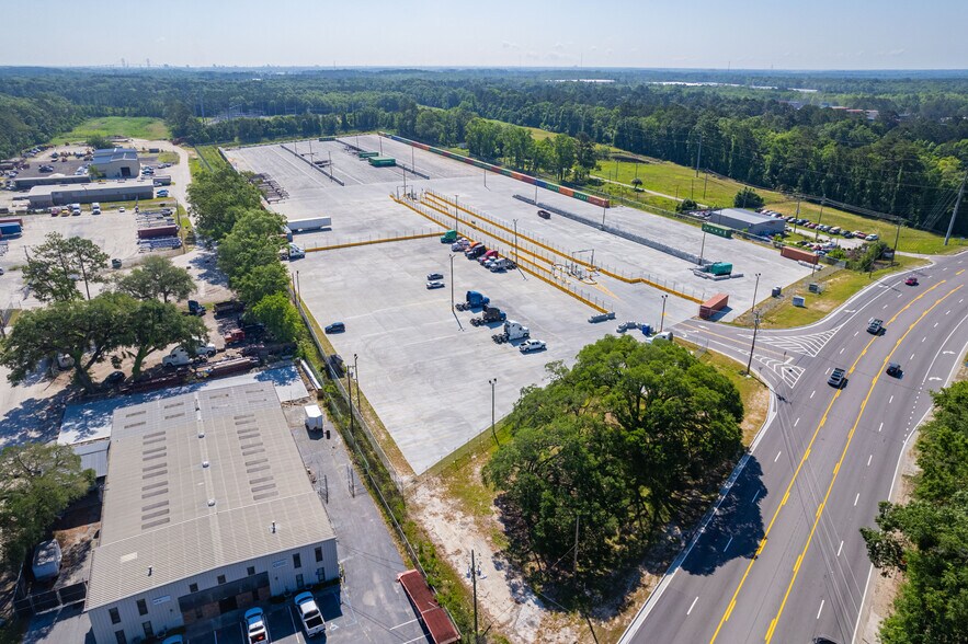 Stationnement sécurisé des conteneurs pavés, des châssis et des tracteurs avec un système de sécurité de pointe fourni par Interport. Situé à 5,3 milles de Georgia Ports Authority.