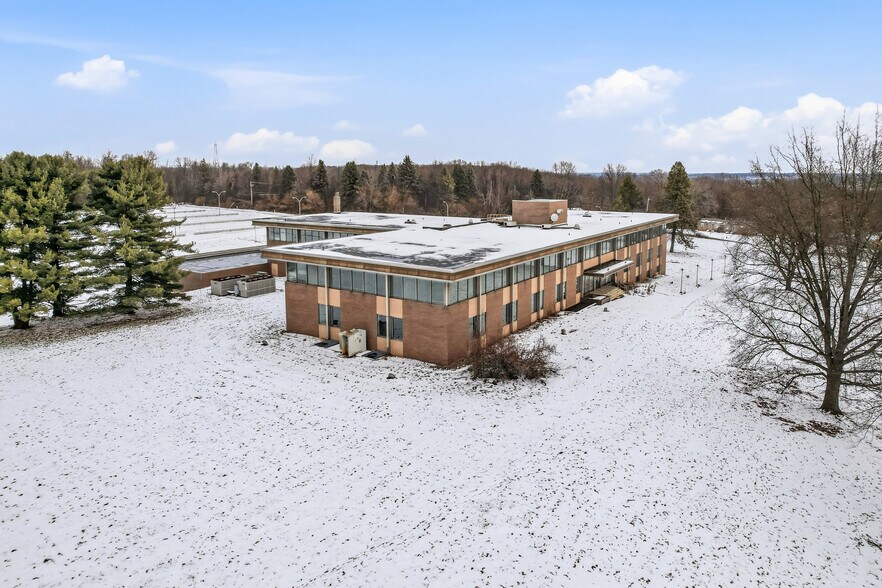 Prime Midpoint Opportunity with flexible Campus Style Lease. Approx 50,000 sq ft office space with additional 6,222 sq ft garage / flex space & additional adaptable square footage totaling 71,288 sq ft. Unbeatable Location: Strategically positioned midway between Pittsburgh, PA, and Cleveland, OH, this property offers unparalleled regional access and excellent highway visibility - minutes from I-80. Ideal for organizations serving a large tri-state area. Build out to suit, landlord will customize build out for your needs.