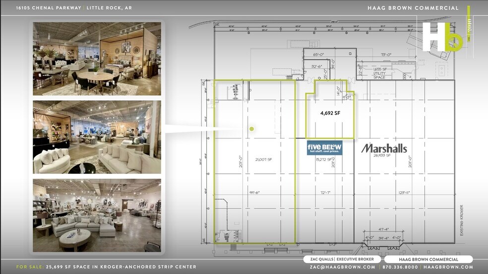Le Chenal Shopping Center est un centre national d'électricité de 63 212 pieds carrés situé dans l'un des corridors à la croissance la plus rapide du plus grand marché de l'Arkansas. Situé près de la plus grande communauté planifiée de l'État, Chenal Valley, à côté d'un Kroger le plus productif, et avec le premier Costco de l'État juste à côté, le Chenal Shopping Center a consolidé son emprise en tant que point focal du trafic de détail et se classe facilement parmi les attractions régionales les plus élevées de Little Rock, un marché de plus d'un million de personnes. Avec deux intersections proéminentes à chaque extrémité du site qui contribuent à un comptage de plus de 36 000 voitures par jour, il s'agit sans doute de l'une des meilleures pièces de commerce de détail en Arkansas. Certains des restaurants, entreprises et détaillants voisins comprennent Chuy's, Starbucks, Tide Dry Cleaners, Arvest Bank, Westrock Orthodontics, Dental Solutions, HomeGoods, Apple Store, Kohls, Home Depot, Target, Walmart, Whole Foods et Academy Sports. Le site se trouve également juste au sud de The Promenade at Chenal, un centre de vie haut de gamme en plein air situé dans la vallée de Chenal. Le Centre commercial Chenal abrite un groupe diversifié de locataires ayant des baux à long terme en place. La gamme comprend Kroger Marketplace, Walk-On et deux locataires de crédit nationaux : 5 Beow, l'un des détaillants à la croissance la plus rapide au pays, et Marshalls, un détaillant populaire qui propose des articles provenant de vendeurs du monde entier. L'espace en ligne de 21 007 pieds carrés, anciennement occupé par Howse, une franchise nationale de meubles, est présentement disponible à la location, ainsi qu'un espace supplémentaire de 4 692 pieds carrés en prime situé à l'arrière de l'immeuble.