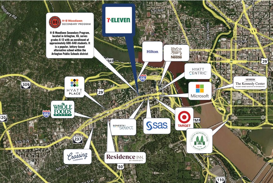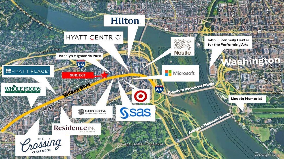 The surrounding area includes a concentration of major employers and amenities, such as headquarters for Nestlé, CoStar Group, and Deloitte, which support a busy commercial environment. The Rosslyn Metro Station is also nearby—about 0.3 miles away—adding significant transit-driven traffic. The area is supported by roughly 25,000 employees and an affluent residential base with average household income around $160,379, providing a solid and stable customer base for the tenant.