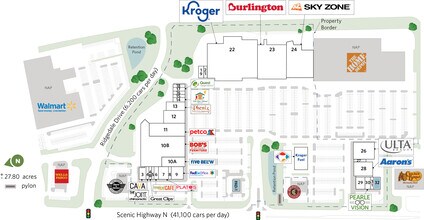 | Superficie totale disponible | 2 800 pi² | Façade | 1 560’ le Scenic Hwy |