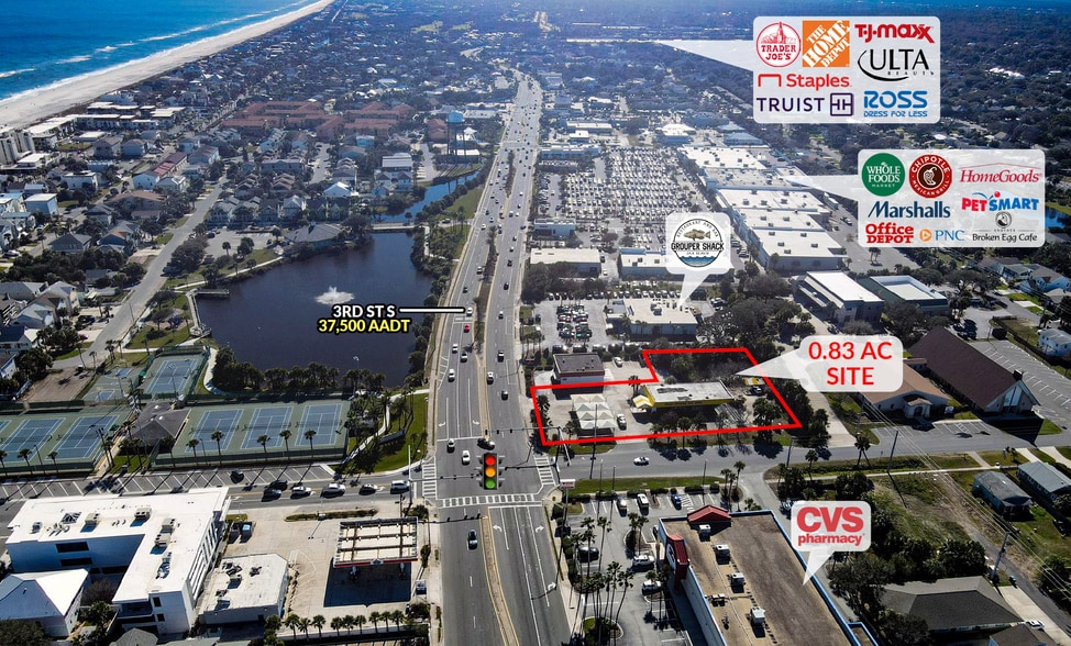 This rare Jacksonville Beach outparcel o?ers exceptional visibility at a hard corner with strong daily pedestrian and vehicular tra?c. Located just one block from the beach and surrounded by popular restaurants and retailers, the site features flexible zoning and is ideally suited for small retail, co?ee, or QSR/fast-casual concepts seeking both walk-up and destination tra?c. With extremely limited inventory in this market, this represents a unique opportunity to secure a premier retail location in Jacksonville Beach!