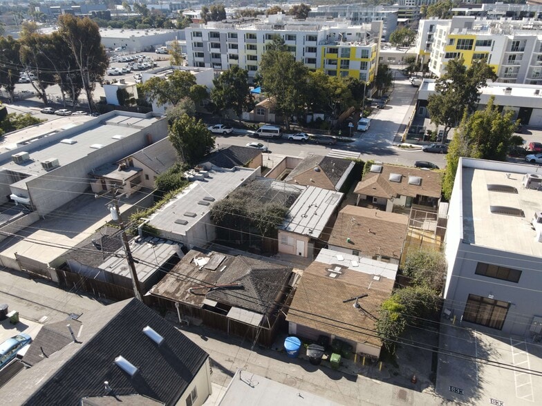 Quatre lots contigus situés dans le secteur de la conservation créative du Plan Bergamote de Santa Monica. À l'heure actuelle, il y a des maisons unifamiliales vacantes sur le site.