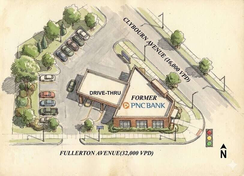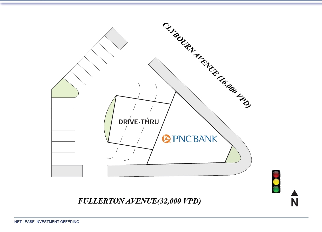 - Size: 5,274 SF total – 2,637 SF on the ground floor and 2,637 SF on the second floor. - Structure: Freestanding two-story masonry building constructed in 2004. - Frontage & Depth: 175 feet of frontage on Fullerton and 171 feet on Clybourn. - Parking: 11 on-site surface parking spaces (2.09/1,000 SF ratio). Two curb-cuts. - Drive-Thru: Existing drive-thru infrastructure with curb cuts on both Fullerton and Clybourn. - Visibility: Highly visible corner with signage opportunity at a high-traffic intersection (24,000+ VPD on Fullerton). - Transit Access: Less than one mile to both the Fullerton CTA Station (Red/Brown/Purple) and Clybourn Metra Station. - Transit Oriented Development (TOD): Yes - Availability: Entire building must be leased to a single user – no demising. - Zoning: M1-2 - Enterprise Zone: Property can be rezoned for residential. Property is within Enterprise Zone 4. - HB2621 Affordable Tax Incentive: Qualifies for Tier 3 - Alderman: Scott Waguespack (32nd Ward) - Neighborhood: Lincoln Park