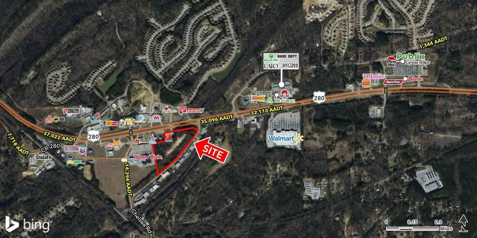 - Located on busy US Highway 280 with visibility to over 36,529 cars per day.