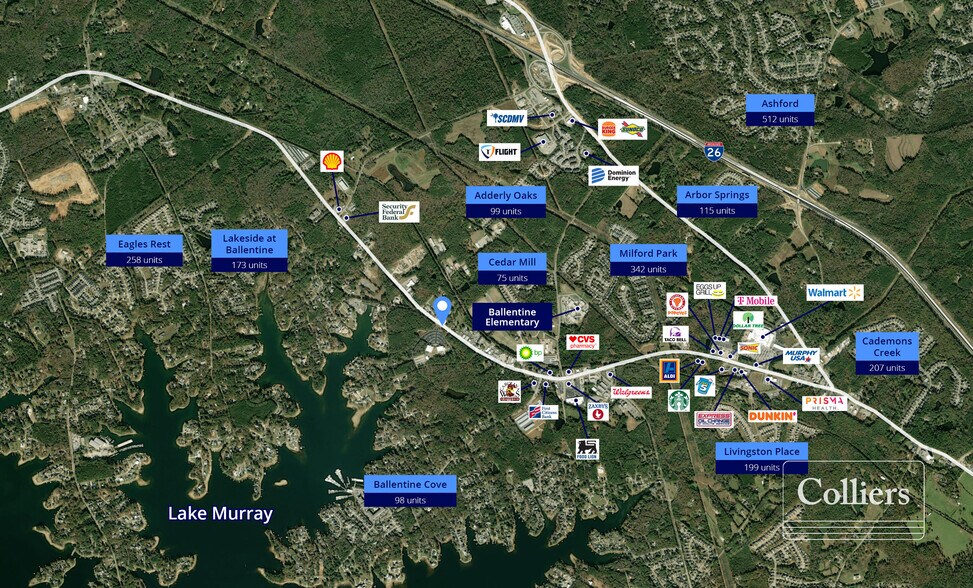 - Situé directement de l'autre côté du chemin Dutch Fork de l'église baptiste Gateway, qui compte environ 2 000 membres