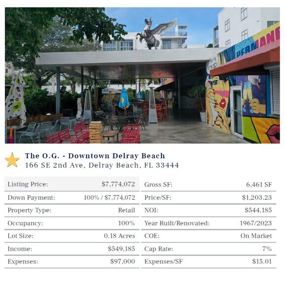Le Downtown Delray Beach Commerce de détail Propriété à 166 SE 2nd Ave, Delray Beach, FL 33444 n’est plus annoncé sur LoopNet.ca. Contacter le courtier pour obtenir des renseignements sur la disponibilité.