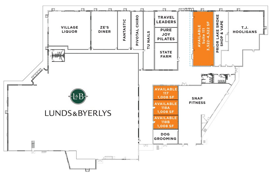 Ce centre rénové est ancré dans une épicerie haut de gamme de 35 000 pc au cœur du marché en pleine croissance de Prior Lake. Veuillez consulter la brochure ci-jointe pour obtenir de plus amples renseignements. Situé le long de la route 13 et de l'avenue Duluth avec une visibilité optimale et est le quartier d'affaires central de la région.