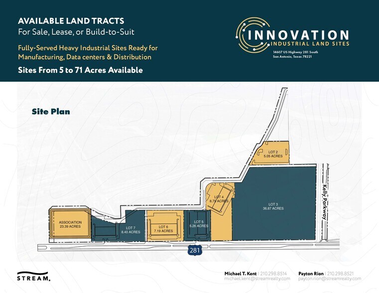 Le parc industriel Innovation est idéalement situé le long de l'autoroute 281, entre les boulevards 410 et 1604, dans le sud de San Antonio.