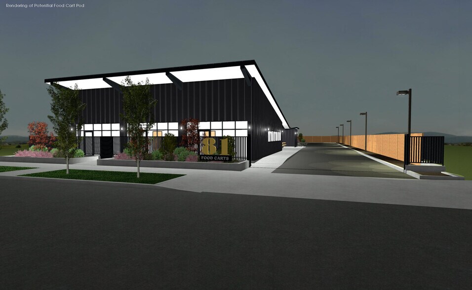 The current owner has developed a site plan for a food cart pod, with design materials and pre-application notes available upon request.
