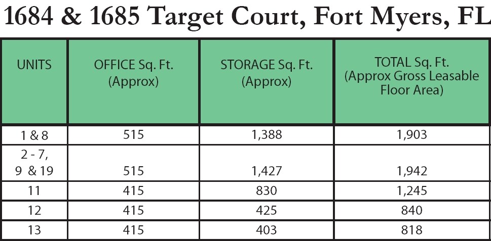 1684 Target Ct 929–5 103 pi² d'espace disponible • Industriel • Fort Myers, FL 33905