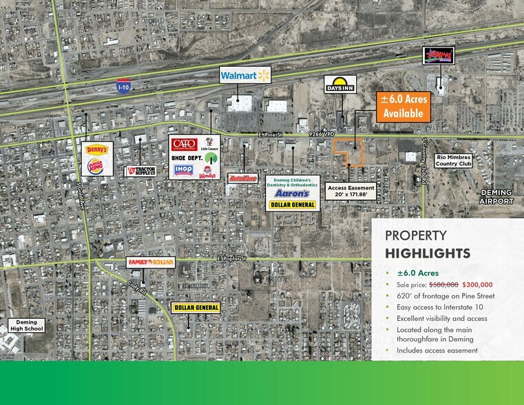 Excellente occasion d'acquérir 6+/- acres le long du corridor commercial de la rue E. Pine à Deming, au Nouveau-Brunswick, juste à côté de l'Interstate 10.