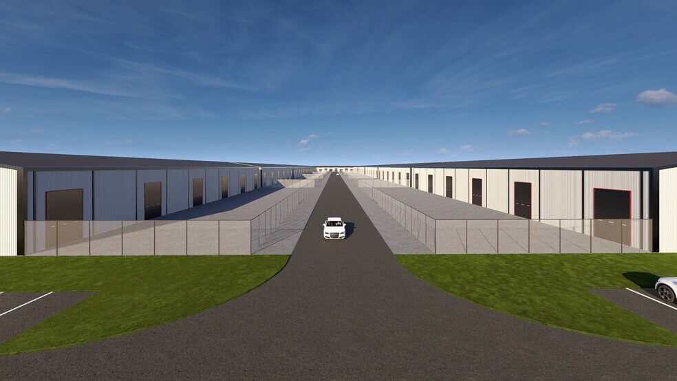 Brand new construction with industrial flex units ranging from 1,600 - 10,000 SF. These specific spaces include fenced in yard spaces in the rear of the unit with full aceess via designated roadway and gate. Standard finish out includes an office and bathroom with full HVAC and stained concrete floors throughout unit. One 12' x 14' drive in bay door with a glass storefront entrance. Pre-lease for potential customization of the unit including mezzanines, kitchenettes, additional offices, etc.