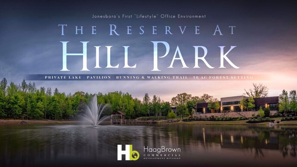 Haag Brown Commercial Real Estate & Development a récemment lancé un nouveau concept à Hill Park, qui est idéalement situé dans la zone Windover Park, au centre de Jonesboro, en Arkansas. La réserve du parc Hill est un aménagement de bureaux de 27 acres axé sur le style de vie, avec un sentier de course pittoresque, un pavillon et un lac de 3 acres. « Nous passons plus de temps au bureau que chez nous. Dans cet esprit, il est attrayant d'avoir des commodités comme un lac, un sentier privé, un quai de pêche, un pavillon et près de 20 acres d'arbres matures et d'animaux sauvages. L'idée d'avoir ma bicyclette au bureau et de partir l'après-midi pour faire un tour me rend excitée... Lorsque les gens pensent à la réserve du parc Hill, je veux qu'on pense au vélo, à la course, à la planche à pagaie, aux hamacs, aux animaux, à l'eau et au plein air en général. » - Joshua Brown | Haag Brown Directeur, CCIM. La réserve abrite actuellement Haag Brown Commercial, Majewski Plastic Surgery & Spa, Arthritis & Rheumatism Associates, et la construction de Stonebridge qui sera bientôt ouverte. 6 lots d'un total de 4,5 acres laissent place à un certain nombre de configurations de site différentes. Cinq lots sont situés à l'entrée du développement et 1 se trouve à l'arrière, directement sur le lac. Les lots peuvent être achetés individuellement ou les propriétaires construiront jusqu'à 10 000 pieds carrés. Situé le long de l'Interstate 555, Jonesboro est l'épicentre du nord-est de l'Arkansas. Malgré les tendances négatives observées dans d'autres marchés à l'échelle nationale, Jonesboro est l'une des 26 villes des 363 régions statistiques métropolitaines des États-Unis qui ont non seulement recouvré les emplois perdus à la suite de la chute récente de l'économie, mais s'y sont ajoutés ! Jonesboro demeure le principal bastion de la croissance et de l'investissement. Desservant une zone commerciale de plus de 500 000 habitants dans près de vingt-quatre comtés de l'Arkansas, du Missouri et du Tennessee, Jonesboro a connu une croissance constante de plus de 40 % depuis 1990 et devrait maintenir ce même niveau de croissance ou un niveau supérieur de croissance au cours des 20 prochaines années. Avec une population de 363 689 habitants de la zone commerciale principale, Jonesboro dessert clairement plus de 68 000 résidents. Jonesboro abrite également les Red Wolves de l'Arkansas State University, l'une des universités de l'Arkansas qui connaît la croissance la plus rapide en Arkansas et qui devient l'une des meilleures institutions du Mid-South.