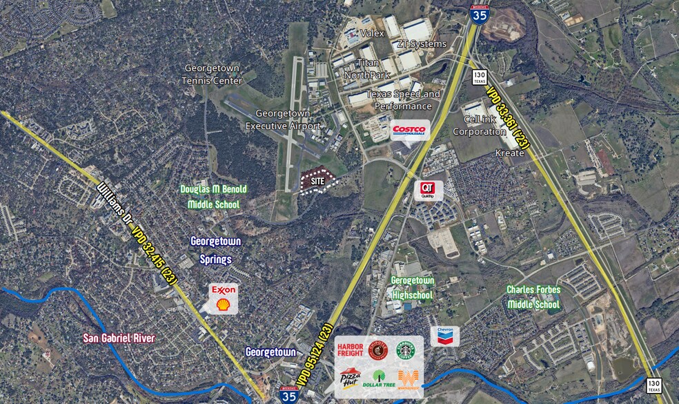 Property is made up of three tracts totaling approximately 16.068 Acres directly adjacent to the Georgetown Airport. Property has +/- 732' of frontage to Lakeway Dr and is minutes from I-35. The Property is suitable for a variety of commercial and industrial uses.