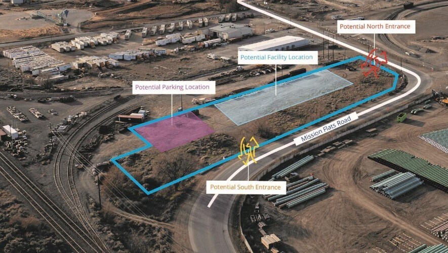 - Il est idéalement situé le long de la principale route menant au site d’enfouissement de Mission Flats, ce qui assure un accès efficace pour les activités industrielles.