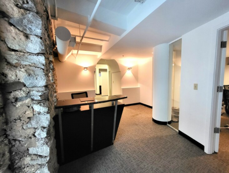 À proximité du hall principal. Espace réception avec kitchenette et grande salle de conférence. Deux postes de travail intégrés et plusieurs bureaux privés spacieux.
