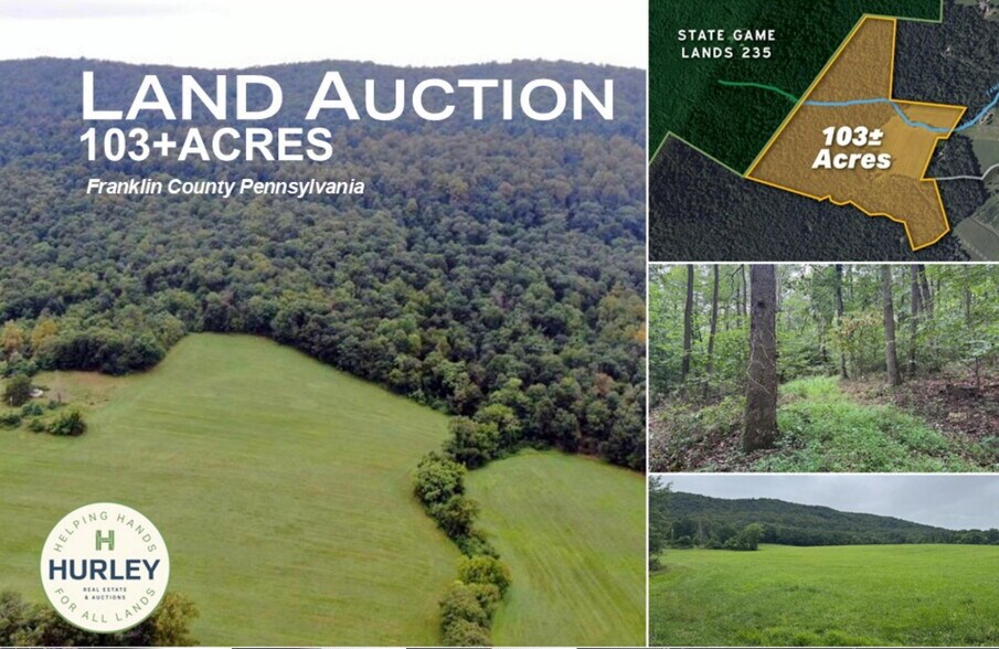 SUPERBE TERRAIN DE 103± ACRES À ST. THOMAS, PA! Cette propriété remarquable offre un mélange parfait de terres ouvertes et boisées, comprenant environ 20± acres cultivables, le reste étant boisé. Bordant plus de 5 000 acres de terres de chasse d'État (State Game Lands 235) et avec plus de 3 000 pieds de frontière commune, cette propriété offre d'innombrables possibilités de loisirs et d'exploration. Un véritable rêve pour les amateurs de plein air, elle propose une chasse exceptionnelle avec une abondance de cerfs, ours, dindons et bien plus encore. La propriété avait auparavant une maison et comprend toujours un puits et un système septique en place, bien que l'état de ceux-ci soit inconnu. Depuis presque tous les points de vue, vous profiterez de kilomètres de vues à couper le souffle qui mettent en valeur la beauté de la région, et Campbell Run traverse la propriété. Idéal pour un magnifique site résidentiel! L'accès se fait par un droit de passage partagé (ROW) depuis Apple Way, St. Thomas, PA. Une opportunité unique dans une vie—ne manquez pas votre chance de l'acquérir! Cette propriété sera mise aux enchères le jeudi 18 septembre 2025 à 15h00. Le prix affiché ne représente en aucun cas une mise minimale, de départ ou acceptable.