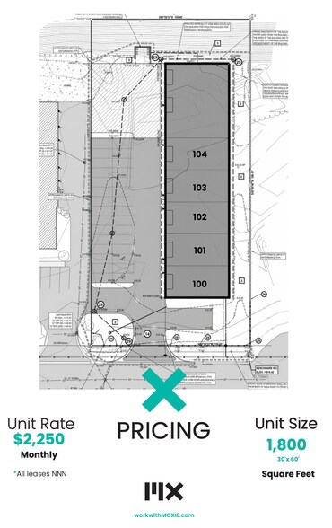 | 1er étage - 100 | 1 800 pi² | 2-10 ans | 15,98 $ CAD/pi²/an 1,33 $ CAD/pi²/mois 28 773 $ CAD/an 2 398 $ CAD/mois | Flex | construction partielle | Maintenant |