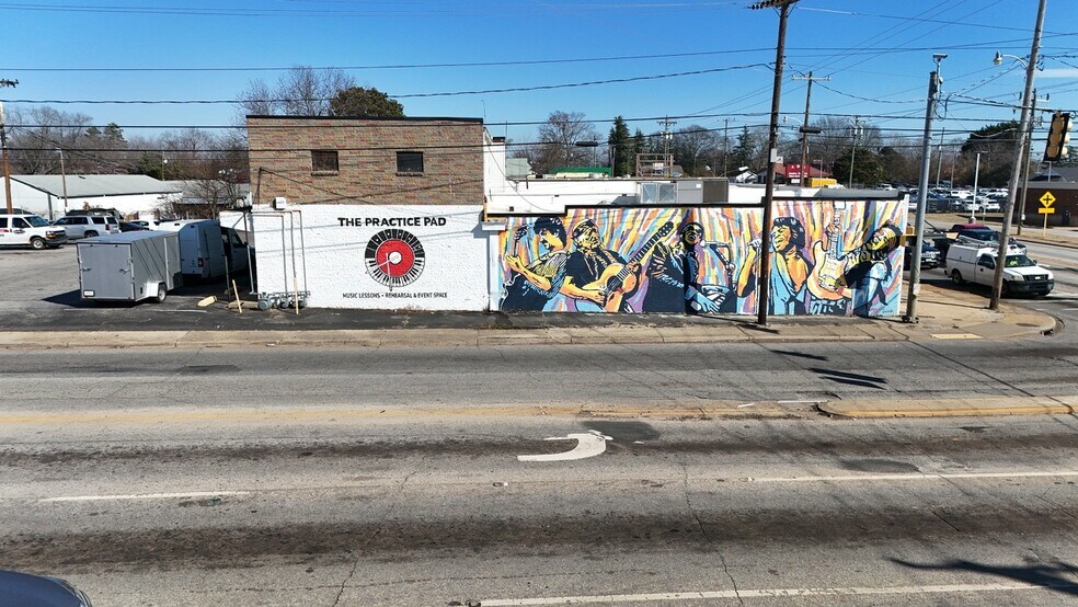 - The Artwork on the side of the building is of 4 musicians and an iconic picture in Greenville