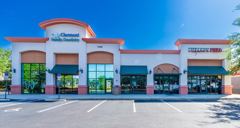 The property is a retail shopping center located at 1714 US Highway 27 in Clermont, Florida. It includes three outparcels designated for ground lease and a shopping center with a gross leasable area of 64,707 square feet. The site is positioned along a major north-south thoroughfare and is zoned PUD in Lake County. The surrounding area includes residential developments, retail establishments, and planned large-scale projects such as the Wellness Way development.