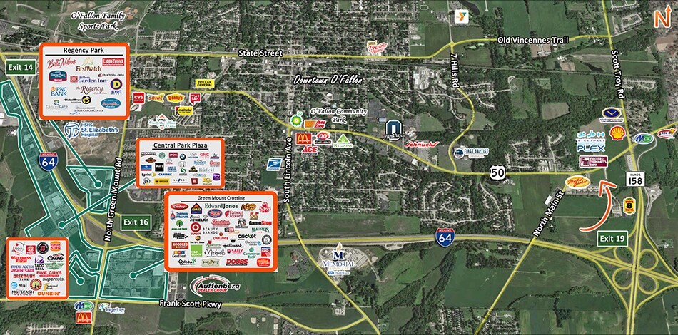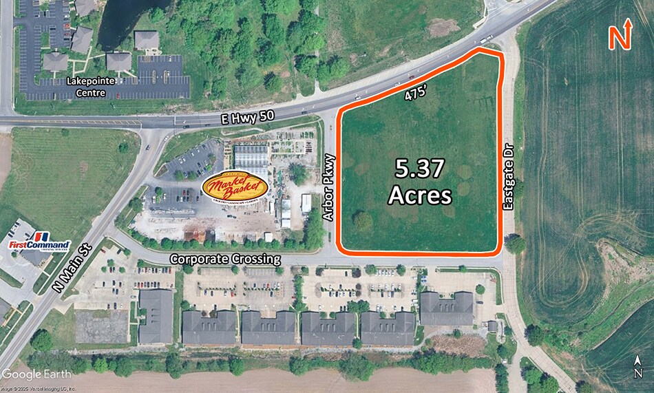 5.37 Acres For Sale. Across from the New McKendree Rec-Plex on US Hwy 50. Level Graded Site with all utilities on site. Road access from all four sides of the site. One mile from I-64-IL Rt 158 interchange. Two miles from from the Scott Air Force Base Shiloh Gate.