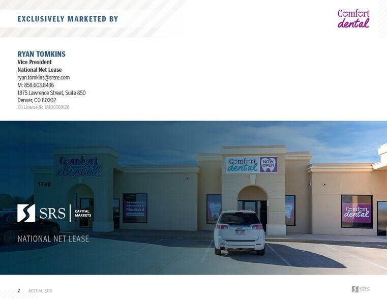 SRS National Net Lease is pleased to offer the fee simple ownership (land and building) of a NNN Comfort Dental investment in Pueblo, Colorado. The tenant recently signed a new 12-year lease with 3 (3-year) renewal options, reinforcing its commitment to the location. The lease features 5% rent increases every 3-years throughout the base term and upon each option exercise, providing built-in inflation protection. With a NNN structure and minimal landlord obligations, the property provides