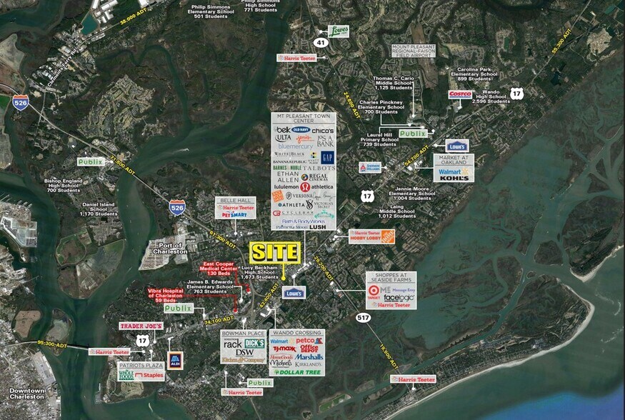 ESPACE DISPONIBLE : ±0,48 acre FLUX DE CIRCULATION : 43 400 véhicules par jour (ADT) sur l'autoroute 17 POINTS FORTS DE LA PROPRIÉTÉ : Situé à proximité de destinations clés pour le shopping, telles que Mount Pleasant Towne Centre (0,6 mi), Indigo Square (0,3 mi) et Belmont Hall Shopping Center (2,0 mi) TAUX DE LOCATION : Appelez pour discuter COMTÉ : Charleston MARCHÉ : Mount Pleasant ZONAGE : AB - VILLE DE MOUNT PLEASANT