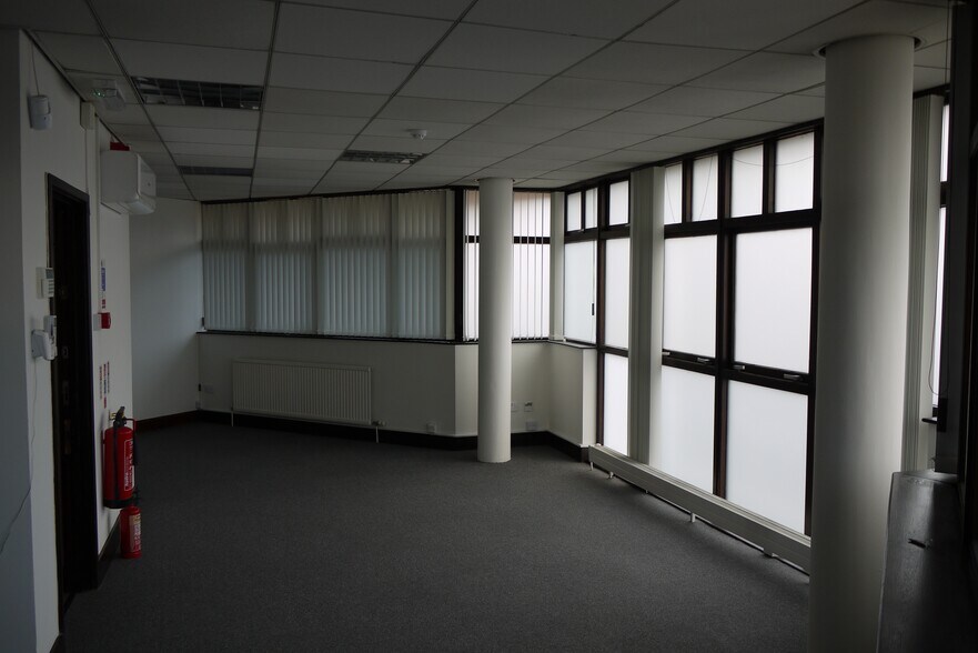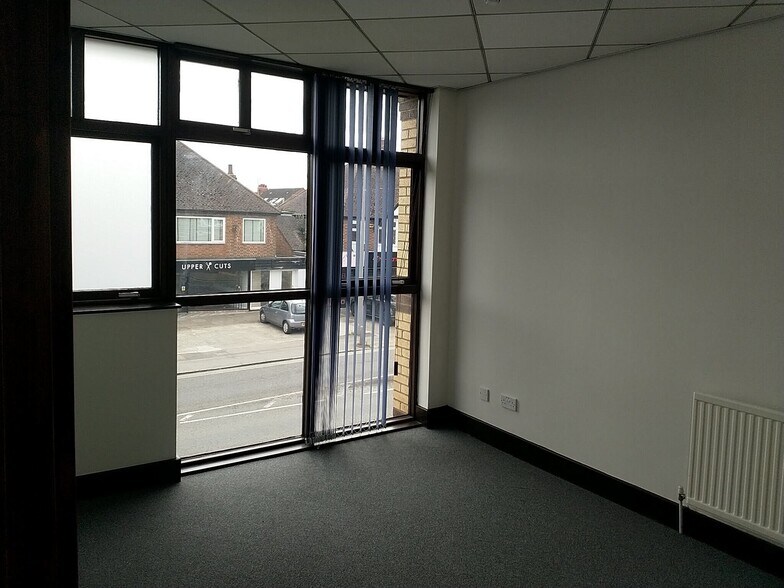 The property is a well-specified, self-contained first-floor office suite located at 181 Queensway, Bletchley, Milton Keynes. It is fitted with carpeted flooring, suspended acoustic ceiling tiles, fluorescent strip lighting panels, perimeter wall-mounted sockets, and gas central heating. The office is currently undergoing refurbishment to include new LED lighting and offers good staff welfare provisions, including a kitchenette and W/C facilities. Four dedicated car parking spaces are provided, and the suite is configured with two partitioned offices and an open-plan central core.