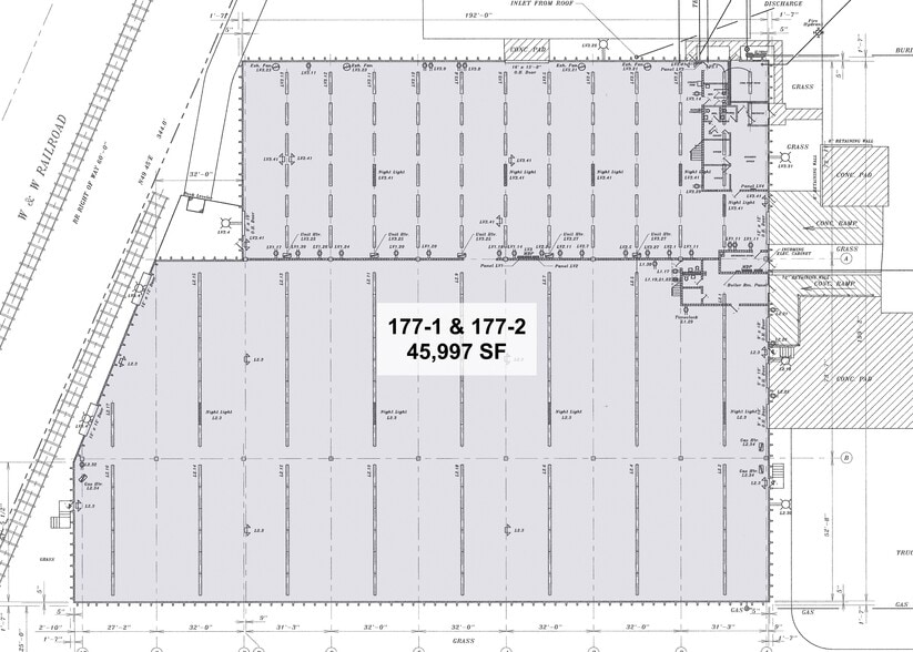 Can be subdivided—30,885 / 15,112 sq. ft. Single story with mezzanine & office areas. Precast pre-stressed concrete construction. (3) docks with 9’ x 10’ doors (2) 12’ x 12’ overhead doors at grade level (1) 16’ x 14’ overhead door at grade level (2) 9’ x 10’ dock doors with railroad access Rail readily available—Connected to Norfolk Southern & CSX by short rail hauler W&W